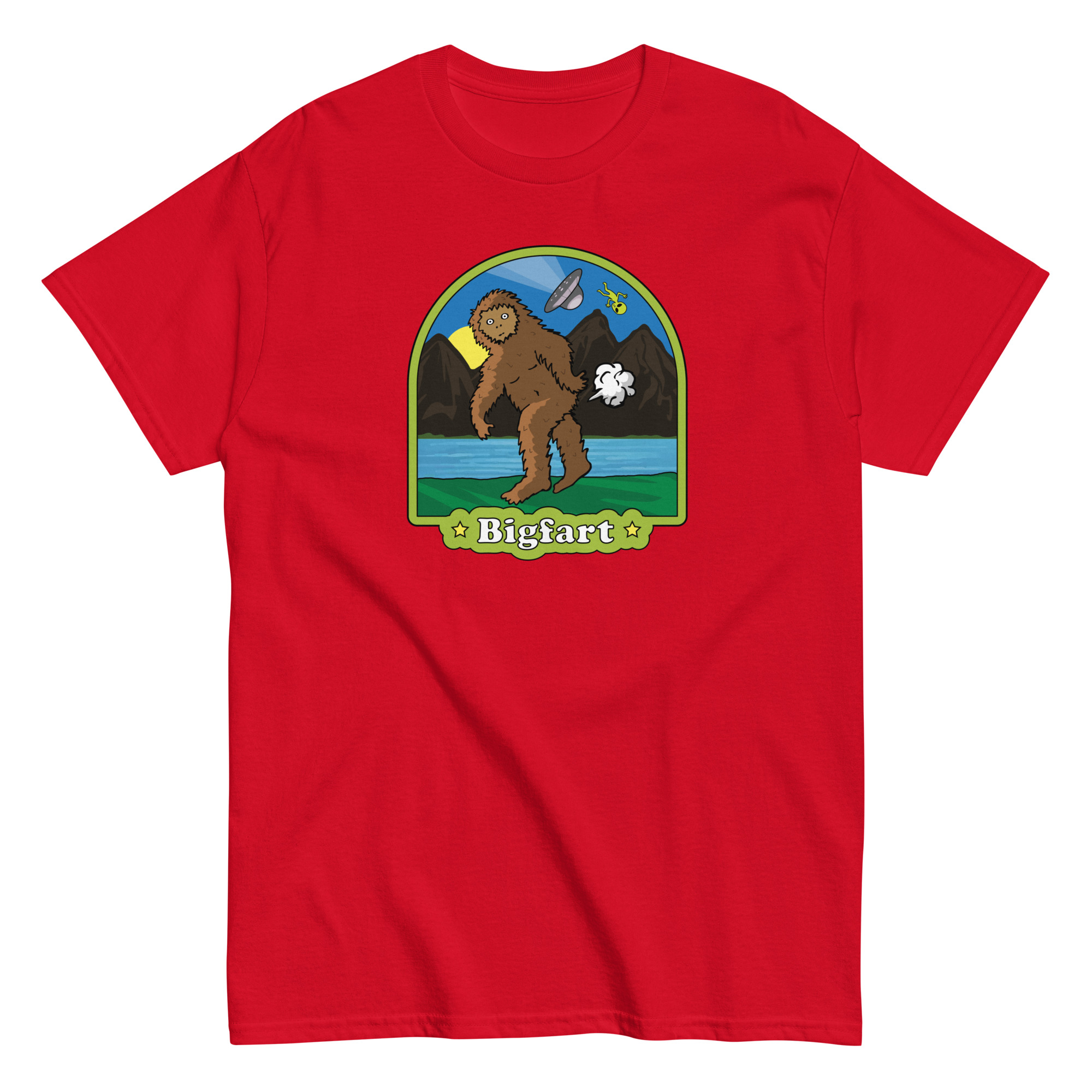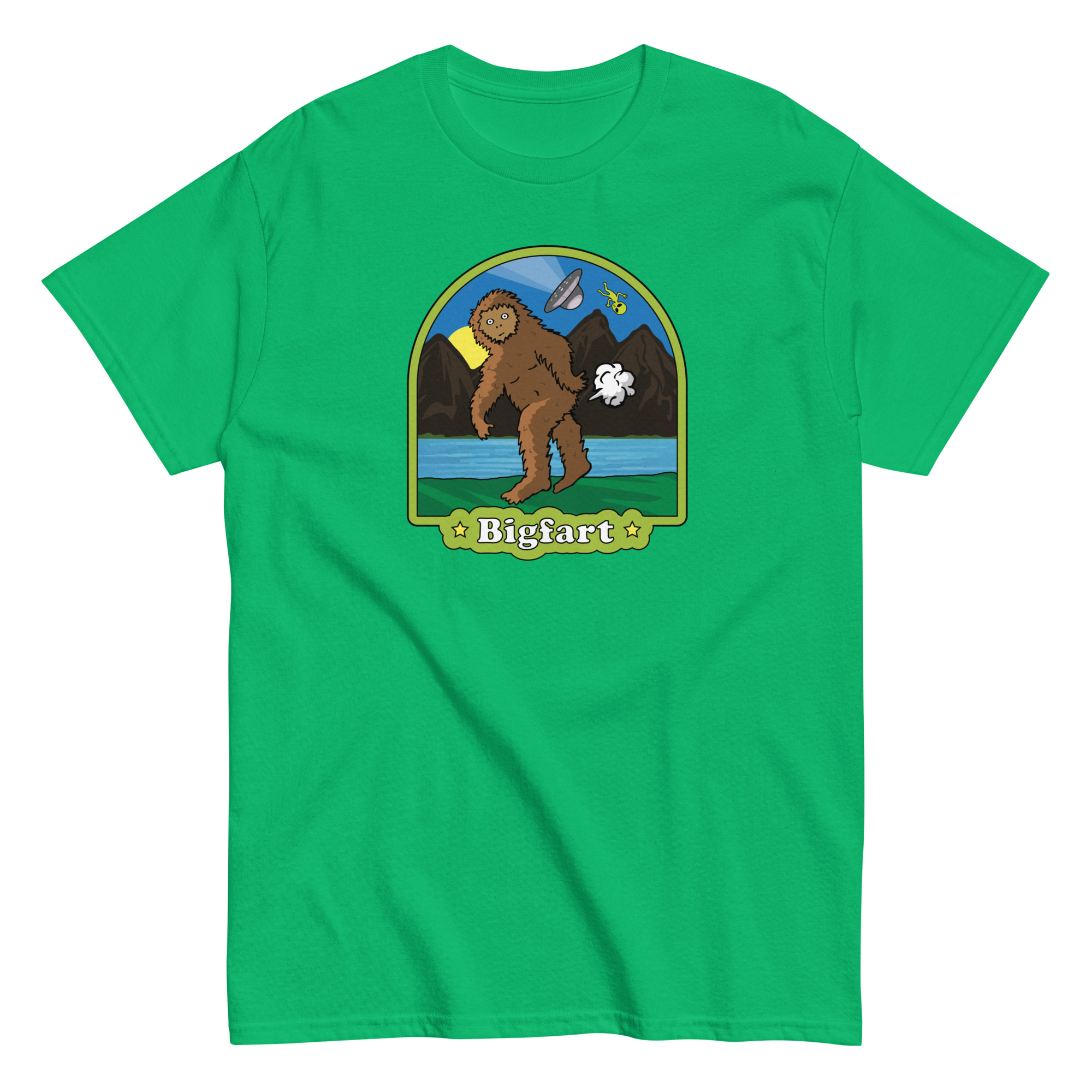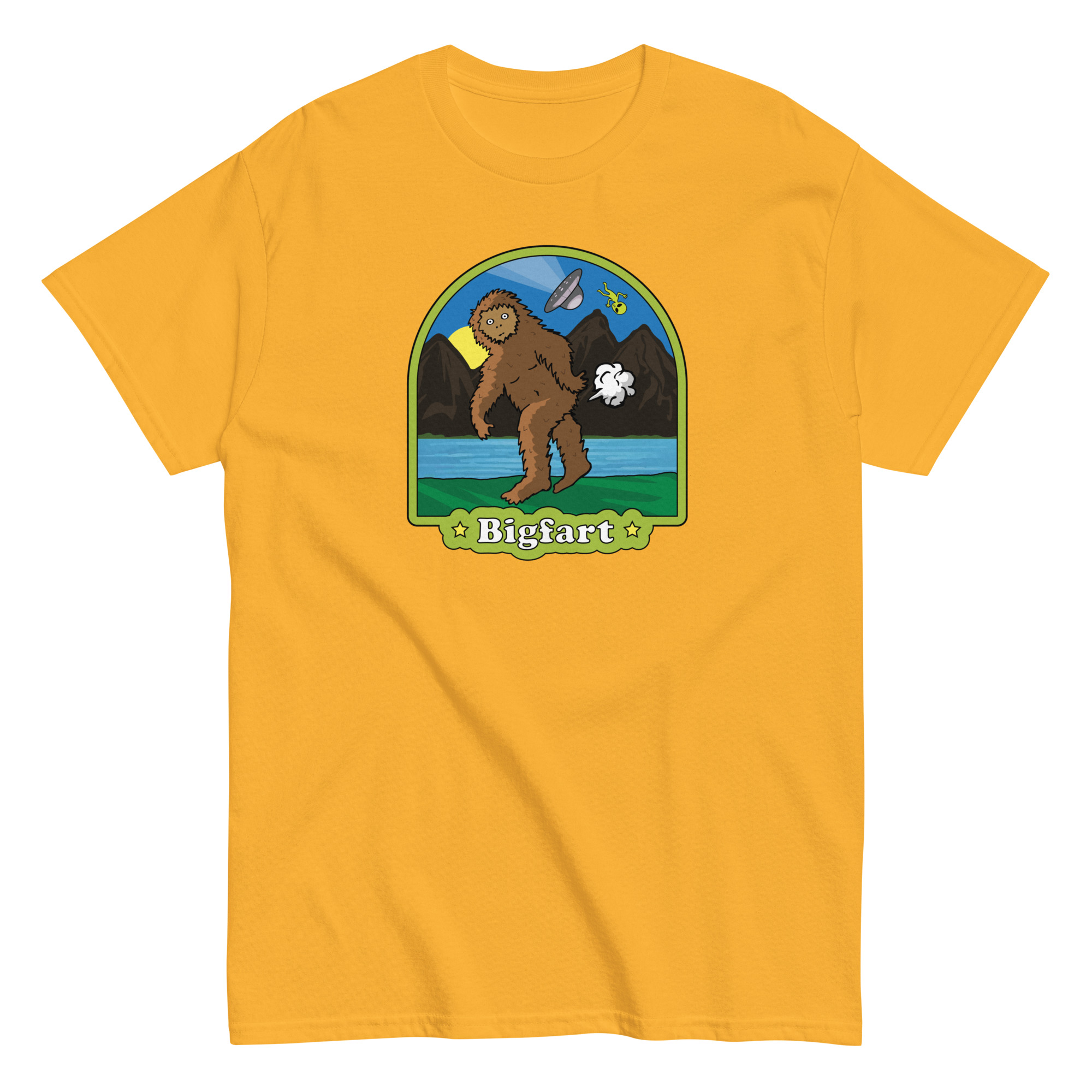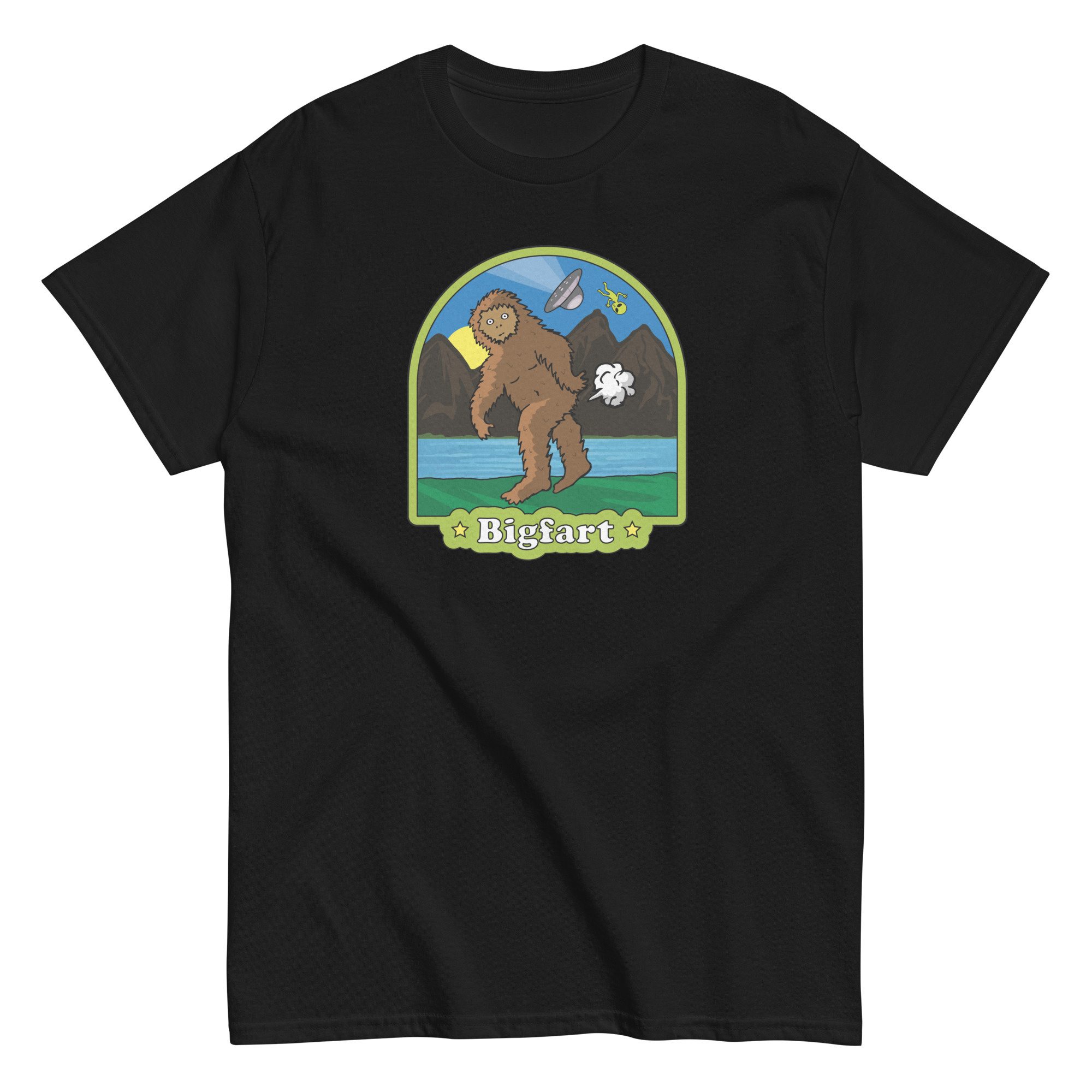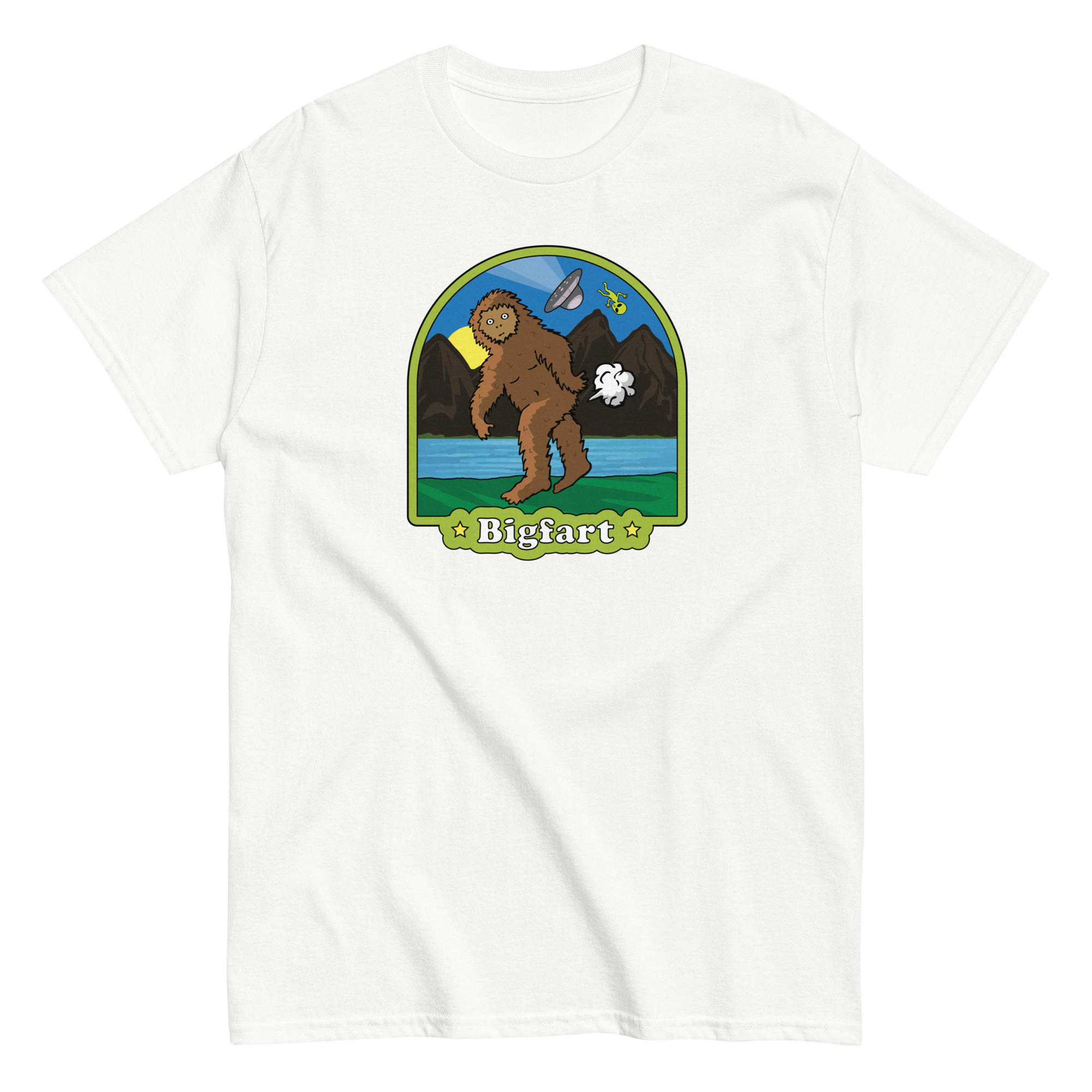 Bigfoot lets out a big one! So powerful, it knocks an alien out of it’s spaceship! This funny bigfoot t-shirt shows that even legendary creatures can’t control their bodily functions sometimes.