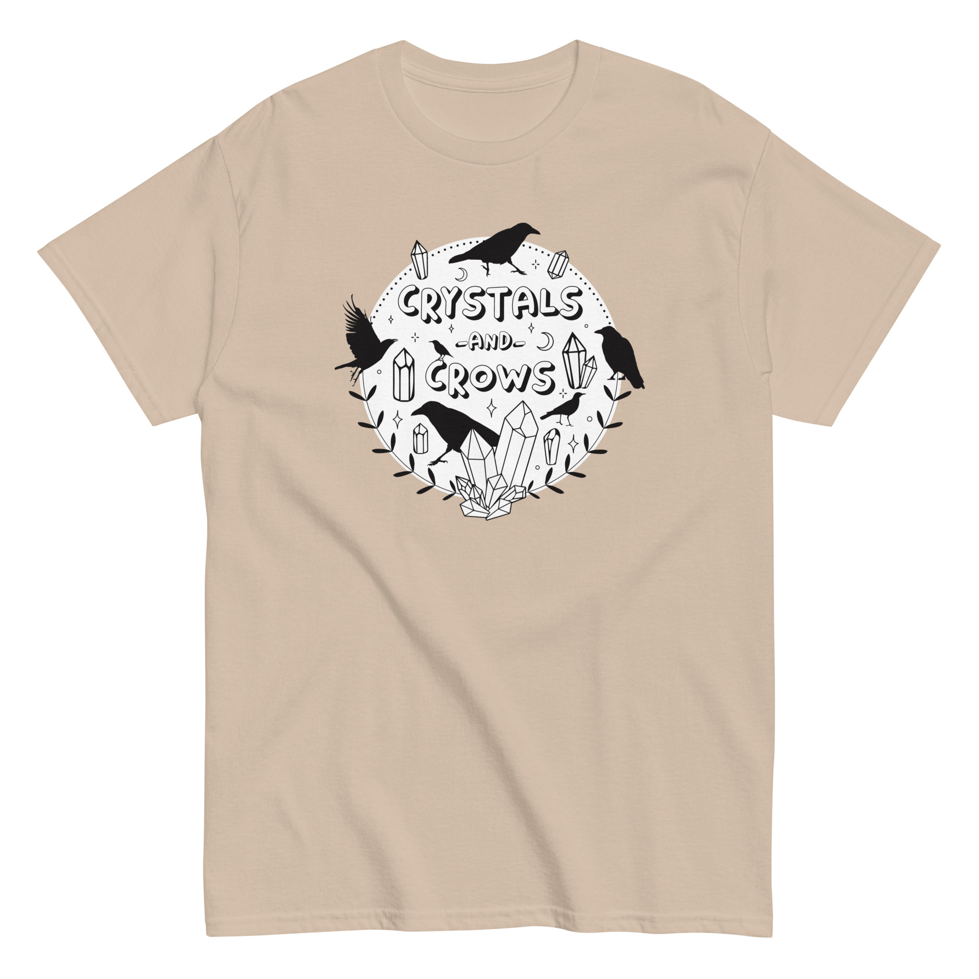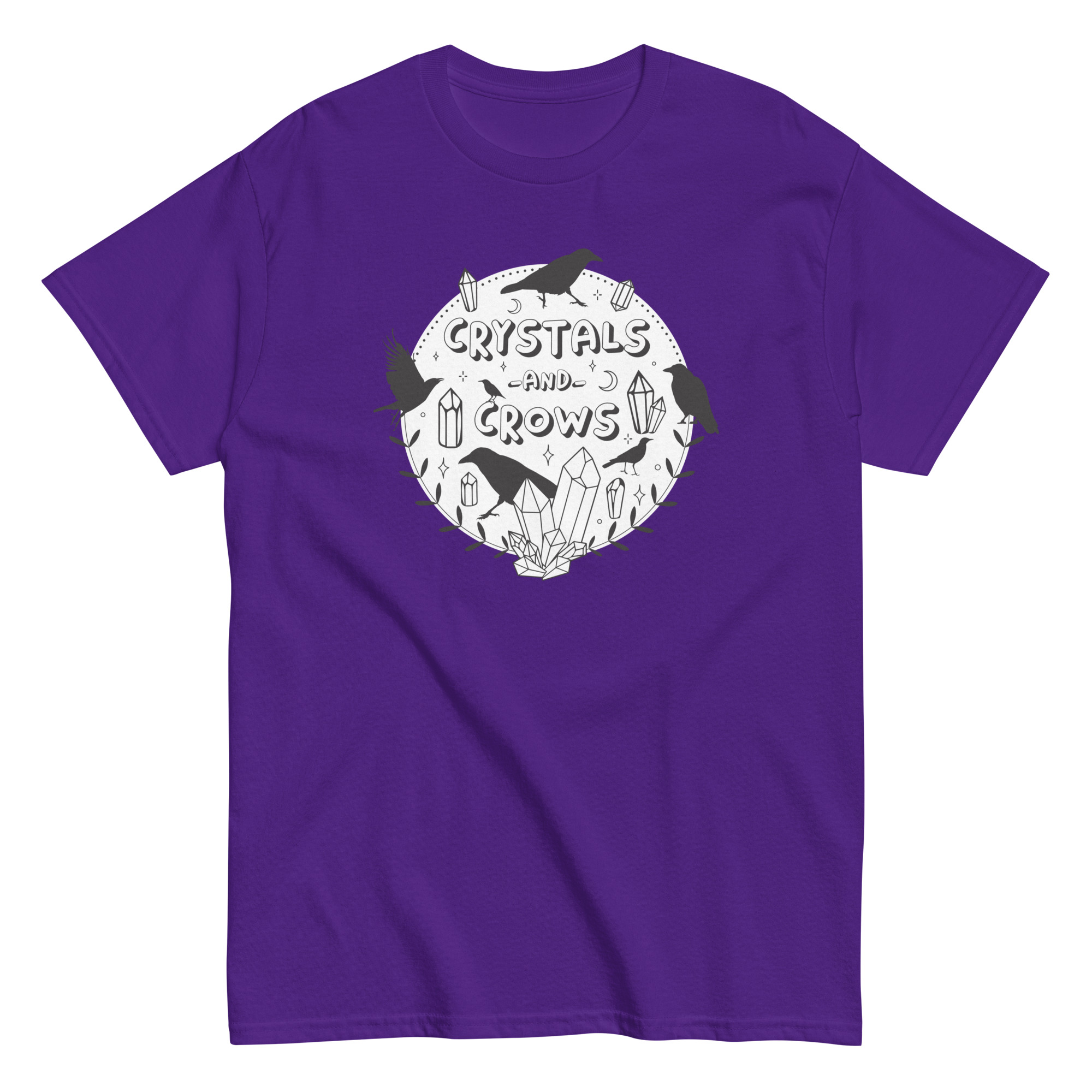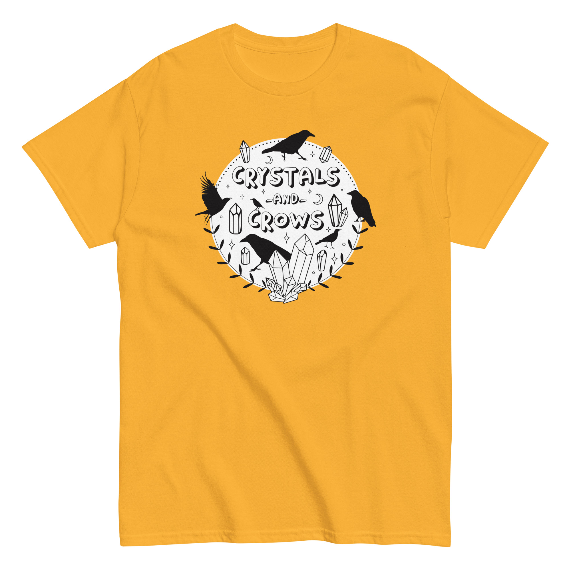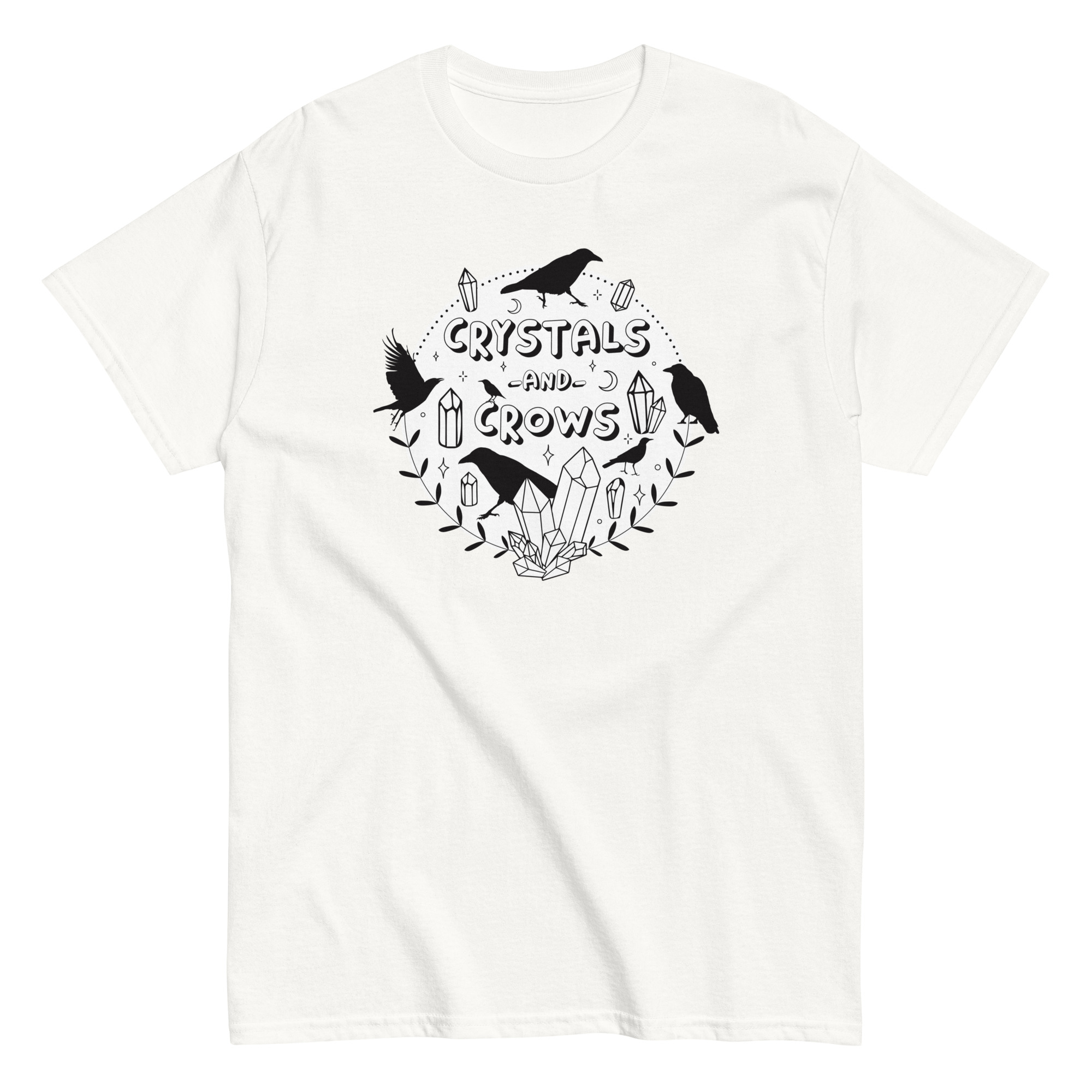 Elevate your style with this unique t-shirt featuring crow motifs and embedded quartz crystals, representing nature’s mystique and beauty. Perfect for a crow lover who enjoys the power of crystal energy!