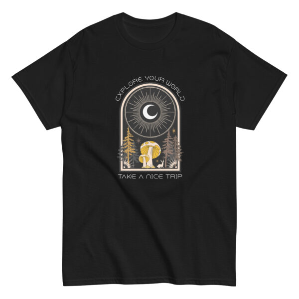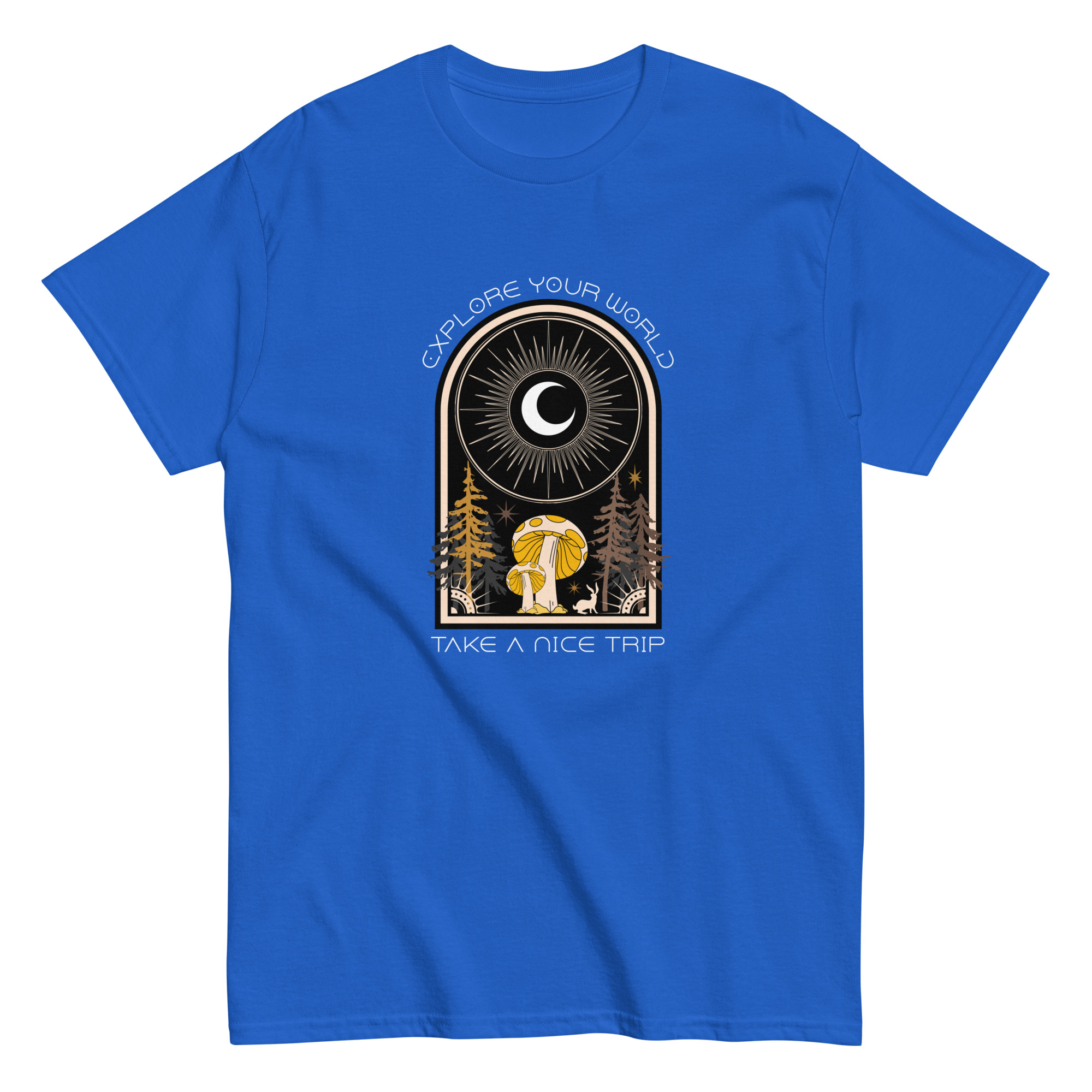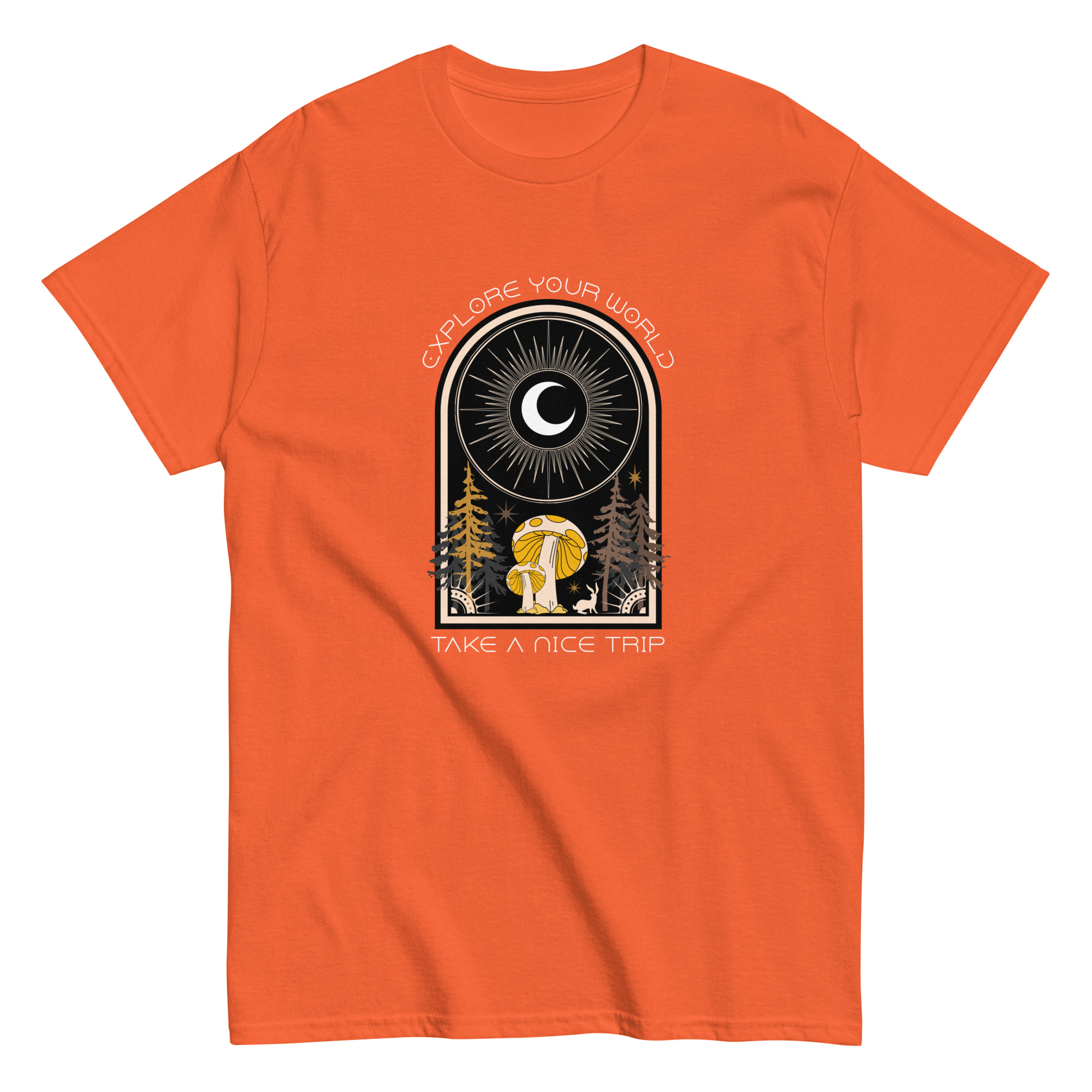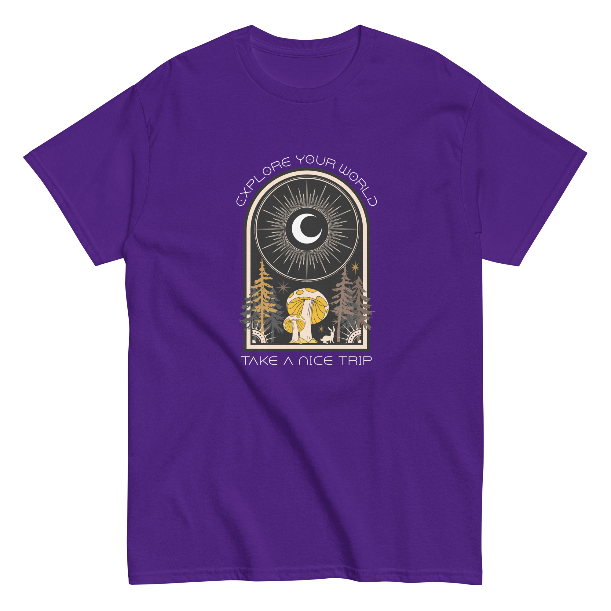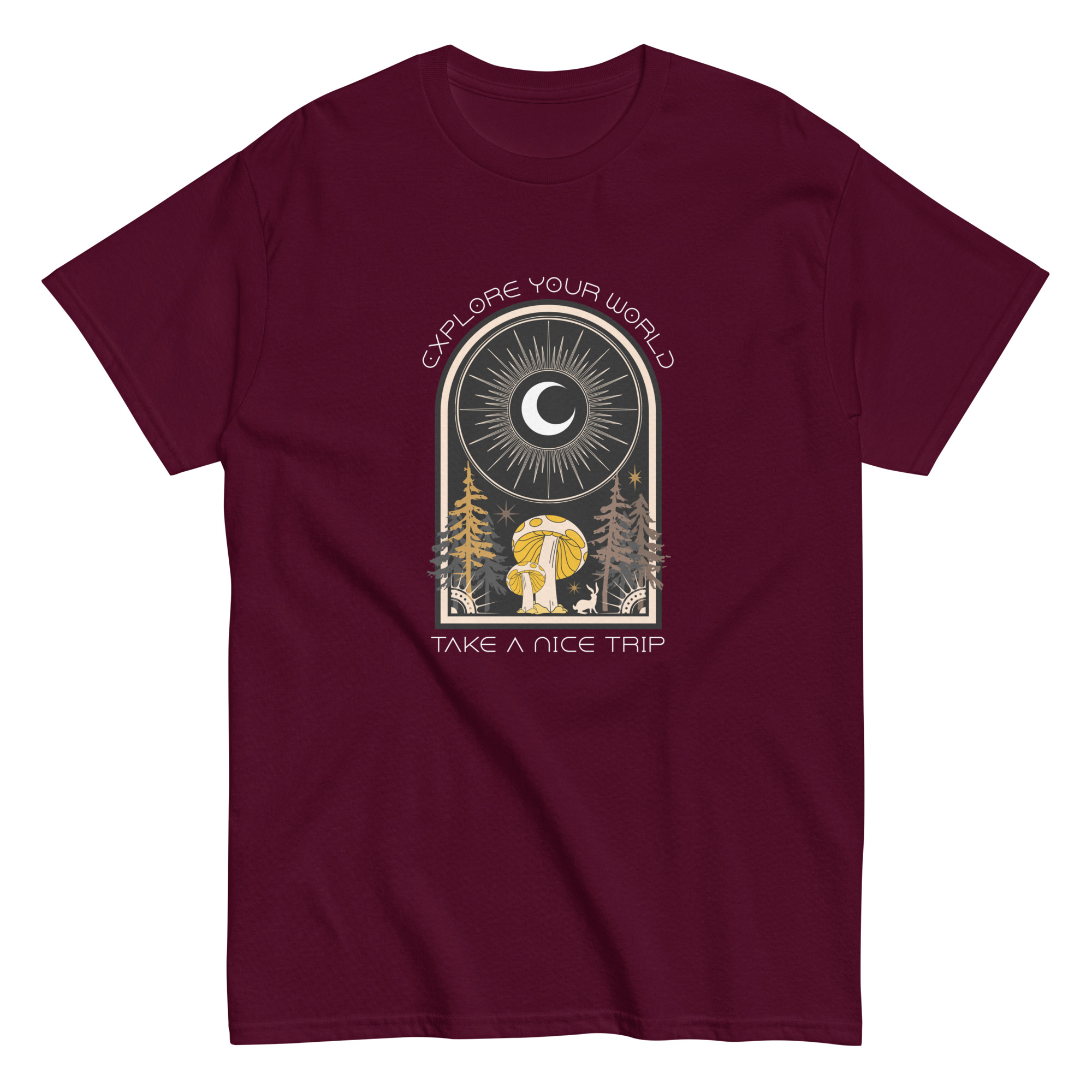 Travelling is fun! Explore your world. Enchanting realms may be just around the corner. And this T-shirt represents the curious journeys that await us.